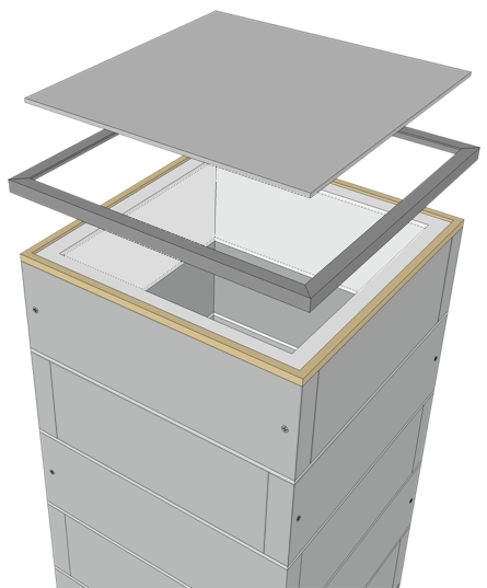 Aplique uma camada de barro no topo da redoma e pressione a moldura nele. Verifique cuidadosamente se está nivelado. Remova o barro em excesso que seja expelido. A altura (barro + moldura) deve ser de ± 15 mm.